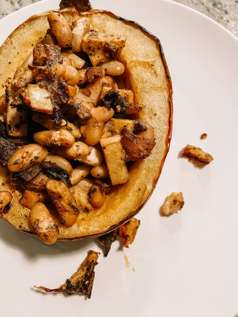 I’ve made a non-vegetarian version of acorn squash but wanted to try my hand at a non-meat version. I’m so happy with how this came out and excited to share! Let me know what you think!